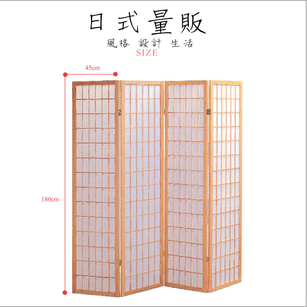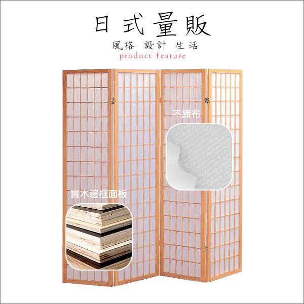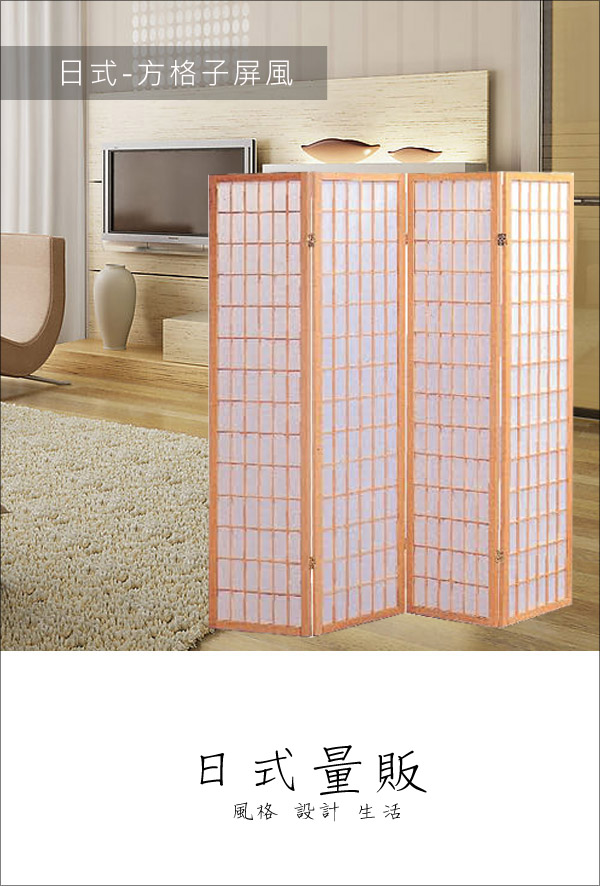 【日式量販】方格日式和風白橡四片式屏風
